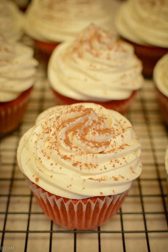 It was inevitable that I would eventually get around to the universally desired Red Velvet Cupcake at some point. This was the requested flavor of another student at work and I admit I was interested in trying it. I already knew that the secret to Red Velvet cake batter was vinegar. I know, right?! But it apparently gives that little tang to the flavor of it all. I'll admit I myself am not a Red Velvet lover. I want the flavor to be more chocolatey than it is and I think a quote I found from another blogger was the most accurate description of Red Velvet flavor I've ever heard. "Red Velvet is a confused cupcake. Is it vanilla? Is it chocolate? It's hard to say." Honestly I feel a Red Velvet Cupcake is only a means to eating a lot of cream cheese frosting and I would really rather have carrot cake in my mouth. But it wasn't my birthday, so Red Velvet it is!